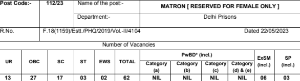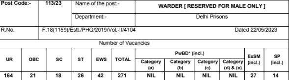 | warder in delhi prisons post code 113/23 | 10th June 2024 |
